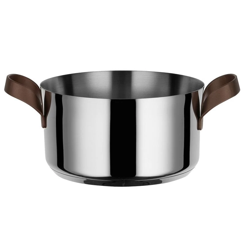 EdEdo low casserole, designed by Patricia Urquiola for Alessi, is made of stainless steel and finished with distinctive, burnished handles.