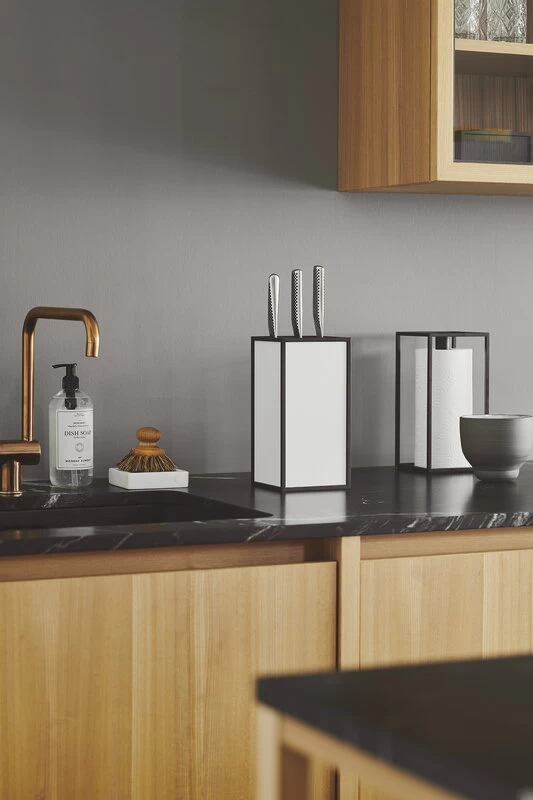 By Lassen’s K’Block knife holder follows the same geometrical design as the brand’s famous, Bauhaus-inspired Kubus collection. The minimalist knife block features a removable, dishwasher-safe insert that makes the holder easy to keep clean and, if the insert is removed completely, allows you to use the block as a storage box for kitchen utensils. The K’Block knife holder was designed by Søren Lassen, the grandson of Kubus creator Mogens Lassen.