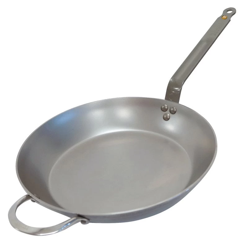 The robust and lightweight carbon steel pans can withstand high temperatures, are excellent for caramelizing food, and stay hot for long. When used regularly, the pan will turn darker and develop a natural non-stick surface – the blacker it gets, the less it sticks. You can also season the pan every now and then. Mineral B pans have been manufactured in France.