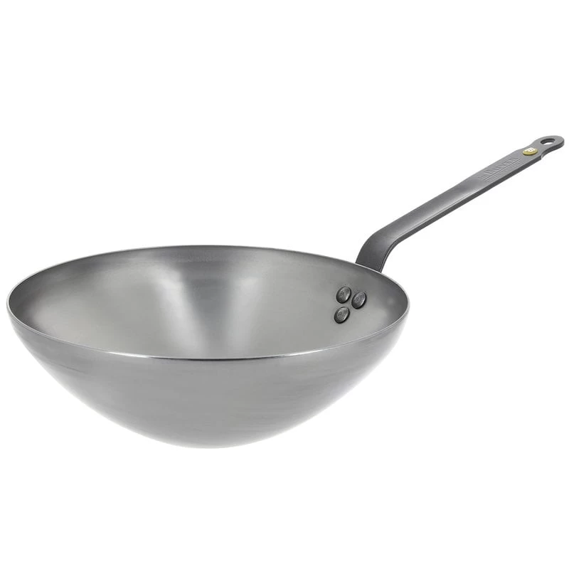 The robust and lightweight carbon steel pans can withstand high temperatures, are excellent for caramelizing food, and stay hot for long. When used regularly, the pan will turn darker and develop a natural non-stick surface – the blacker it gets, the less it sticks. You can also season the pan every now and then. Mineral B pans have been manufactured in France.