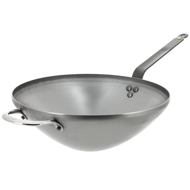 The robust and lightweight carbon steel pans can withstand high temperatures, are excellent for caramelizing food, and stay hot for long. When used regularly, the pan will turn darker and develop a natural non-stick surface – the blacker it gets, the less it sticks. You can also season the pan every now and then. Mineral B pans have been manufactured in France.