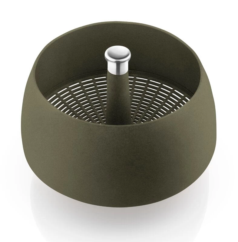 The Green Tool spinning colander by Eva Solo is an ingenious 2-in-1 tool that can be used both as a salad spinner and as a colander for rinsing fruits and vegetables or draining pasta, for example. The spinner function works just by pushing and lifting the axle in the middle, and the excess water runs through the holes at the bottom. The colander is machine washable.