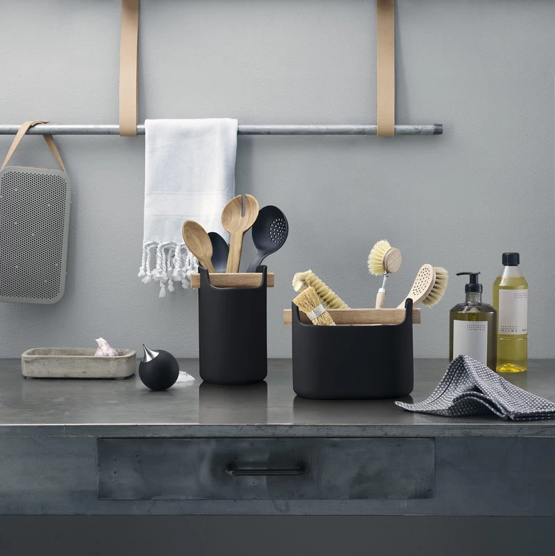 Eva Solo’s Toolbox organiser has a modern, minimalist design and is constructed with simple materials, making it the perfect container for any contemporary interior. The purpose of the organiser is completely up to you – Toolbox is just as suited for the kitchen as a cutlery rack, or for the office as a pencil jar, as it is for the bathroom as makeup storage. Toolbox is equipped with a wooden handle that also doubles as a practical divider for whatever you choose to store in the Toolbox organiser.