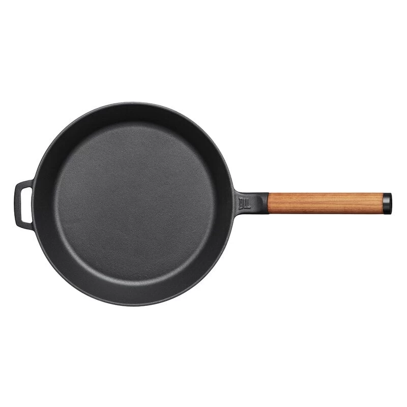 Fiskars Norden cast iron frying pan with removable wooden handle is a member of Fiskars’ top-quality cookware range inspired by Nordic cooking traditions and Finnish knife-making heritage. Due to the unique Thermium mineral treatment, the pots and pans of the collection have a non-stick surface that is suitable for high temperatures. Thermium treatment also allows you to pre-fry the ingredients before further oven cooking. The pan is suitable for all hobs, even induction.