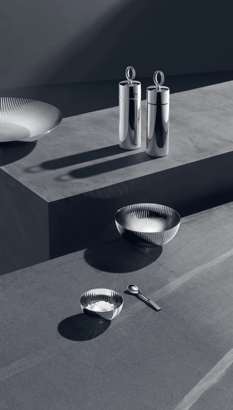 Georg Jensen’s Bernadotte salt and pepper grinder are made of stainless steel and equipped with a high-performance ceramic grinder mechanism. Besides salt and pepper, the grinders can be used for herbs and spices, and the grind can be adjusted from fine to coarse. The surface of the grinder has been polished by hand.