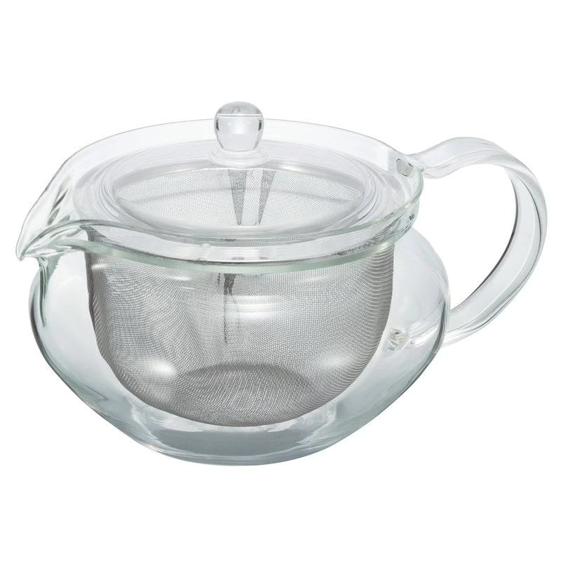 Hario’s ChaCha Kyusu Maru teapot is made of high-quality heatproof glass that enables you to watch the brewing process in action. The elegant teapot is equipped with a large infuser that makes pouring water in and out of the pot easy with no leaves in your tea. The teapot has a capacity of 700 ml, so you can brew 3–4 cups of tea depending on the size of your cups.