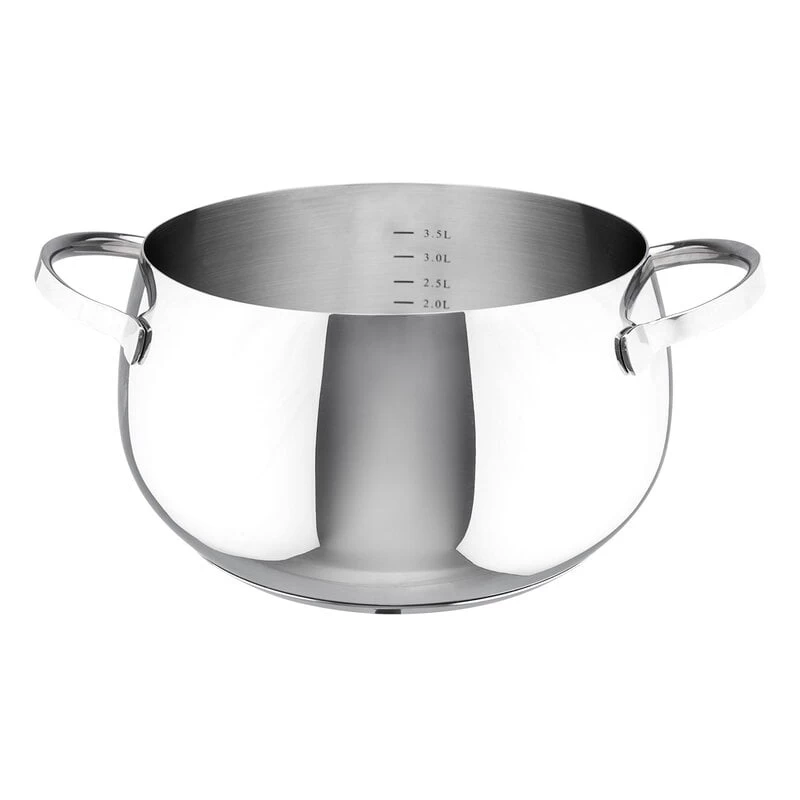 Heirol’s Belly steel pot combines beautiful design and practicality – its gently rounded shape is guaranteed to put a smile on your face! The four-liter pot is made of high-quality stainless steel and equipped with a three-layer base: a thermally conductive aluminium plate is encapsulated between the steel layers, ensuring even distribution of heat. The Belly steel pot is suitable for all types of cookers.