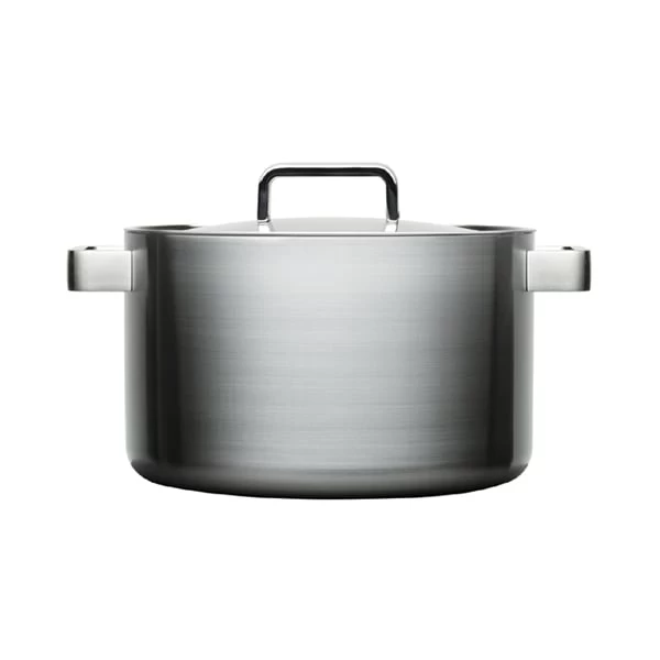 The Tools casserole from Iittala represents impeccable design both in terms of aesthetics and usability. The uncoated steel pot has a special multilayer structure that ensures an even and quick distribution of heat, while the steam vent in the tight-fitting lid and etched volume markers on the inside make cooking effortless. The stylish union of a minimalist design language and brushed steel surface make the casserole also perfect for serving, so you can carry your culinary creations directly from the hob to the table. The 8-litre pot is the largest in the series, and it is ideal for cooking for parties and special events.