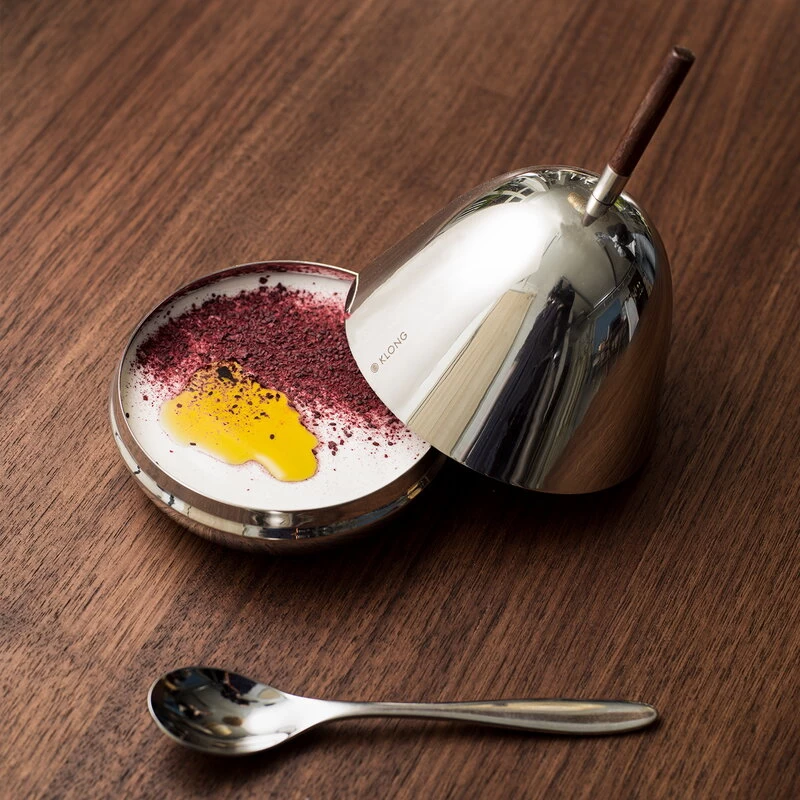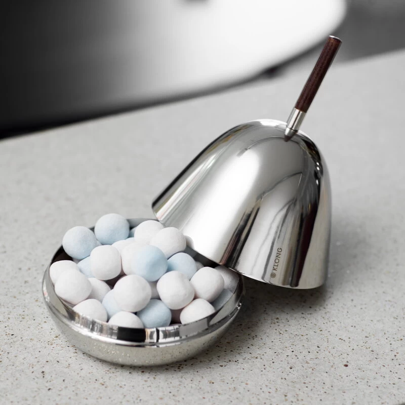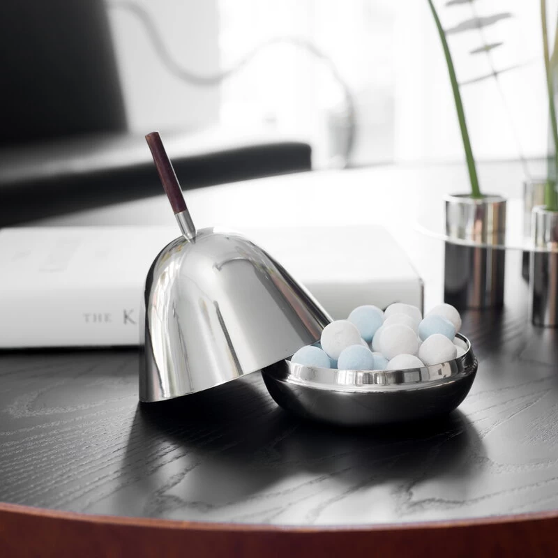 The Gömma Steel container with a lid is named after the Swedish word meaning “to hide”. Designed by Mattias Stenberg, the charming container consists of a small steel bowl and a matching steel lid finished with a wooden knob. The dish can be filled for example with sweet treats or jewellery, and it is also a fun and surprising addition to the table setting – use the dish for butter or cream cheese, or serve an elegant dessert hidden under the dome-shaped lid. The refined Gömma container is also a great gift idea.