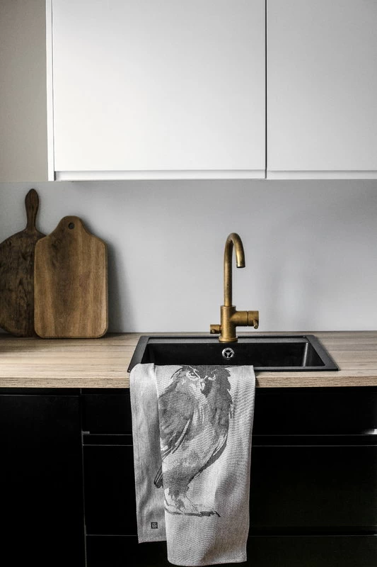 The Huuhkaja tea towel by Lapuan Kankurit is adorned with a handsome eagle-owl illustrated by Teemu Järvi – the towel is named after the Finnish word for the bird. The tea towel is woven at the Lapuan Kankurit weaving mill in Finland using European Masters of Linen linen and organic cotton. Due to its jacquard weave, the tea towel has a lovely varied surface that gives it a relaxed look and underlines the nature-inspired motif.