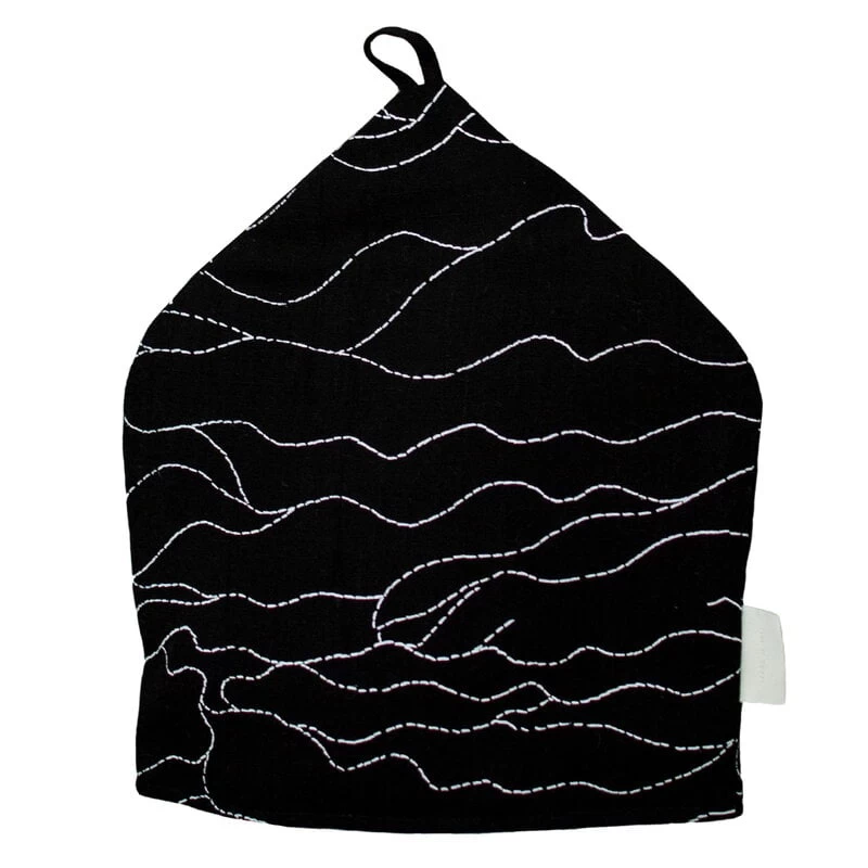 The Rakkauden meri tea cosy by Saana ja Olli is an ode to the unpredictable nature of love: its different forms can change our lives in so many ways. The name Rakkauden meri translates to “sea of love”, and the pattern is comprised of wavy lines that form shapes and human-like forms.